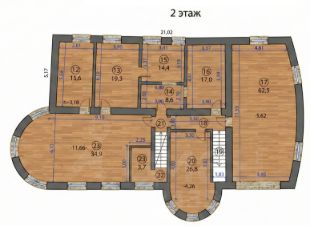 • 2 этаж: мастер-зона с зимним садом и великолепным холлом, 4 спальни (с возможность увеличить до 5-6 спален), рабочий кабинет, с/у.