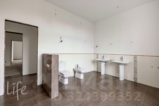 Состояние "под финишную отделку": полы подготовлены под паркет/массив, стены под обои/покраску, с/у под укладку плитки. Разведена вся слаботочка, электрика. Дом отапливается по постоянной схеме.