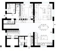 1 этаж: Гостиная-столовая, кухня, спальня, кабинет, 2 с/у, котельная. Выход на террасу. Сауна с выходом на вторую терассу.