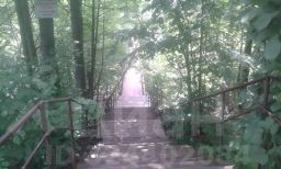 Участок полностью лесной расположен на краю оврага внизу которого протекает речушка впадающая в Москва-реку.