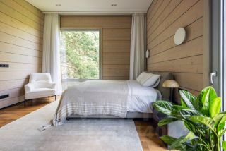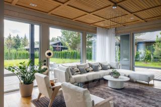 Для ландшафтного дизайна участка работал скандинавский ландшафтный архитектор Riа Ruоkоnеn. Ее подход к проектированию — это воплощение глубокого уважения к природе. Одной из уникальных особенностей является забор с прямой ячейкой темного цвета, который гармонично сливается с природным окружением.