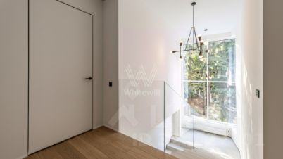 На территории устроены две террасы для отдыха на свежем воздухе. Рядом расположены парковочная площадка, гараж на два автомобиля и отдельный дом для персонала. Пространство вокруг резиденции позволяет обустроить патио, летнюю кухню или костровую площадку — место, где можно насладиться тишиной, наполненной ароматом хвои.