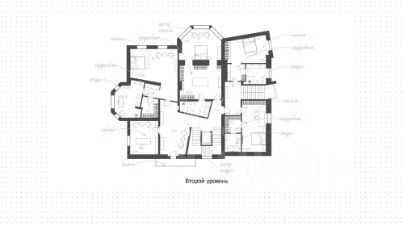 • Второй уровень: холл, 4 спальни с гардеробными и санузлами, кабинет, галерея.