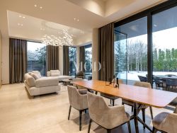 В продаже роскошный абсолютно новый особняк площадью 663 квадратных метра, расположенный на благоустроенном участке 12,4 соток в престижном закрытом комплексе "Усово Плюс". Объект находится всего в 11 километрах от МКАД по знаменитому Рублево-Успенскому направлению.