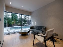 Внутреннее пространство дома включает четыре роскошные спальни, каждая со своей ванной комнатой и гардеробной. Просторная гостиная объединена со столовой зоной, оборудована современная кухня. Особое внимание заслуживает многофункциональная комната для хобби площадью 50 квадратных метров. Двухэтажная спа-зона оснащена хаммамом, сауной и джакузи с несколькими режимами массажа. Предусмотрен гараж на два автомобиля с зарядной станцией для электромобилей и отдельным помещением для водителя.