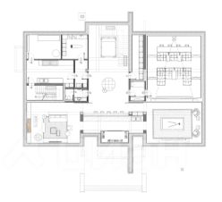 Цоколь: кинотеатр, бильярдная, бар, винный погреб, рабочая кухня, гардеробная, с/у, постирочная, кладовая, бойлерная.