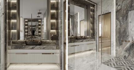 2 этаж: мастер-спальня с двумя гардеробными и ванной комнатой, спальня с гардеробной и с/у, 2 детские спальни, каждая - с с/у, комната няни.