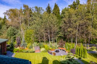 15 соток ухоженного участка с газоном, декоративными растениями, плодовым садом, действующим колодцем, дорожками, освещением по периметру и своей калиткой в лес.