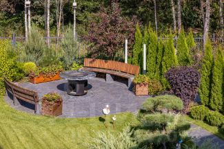 • летняя барбекю-площадка с оригинальной костровой чашей-столом и зимняя отапливаемая веранда