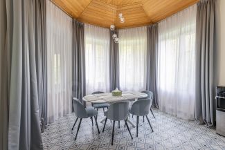 Планировка включает в себя: 4 спальни, кабинет, гостиную, столовую, кухню, несколько зон отдыха, достаточное количество су, мест для хранения, удобные технические помещения. Свежий ремонт, сделанный для себя, с особым вниманием к деталям, цветам, предметам отделки и декора.