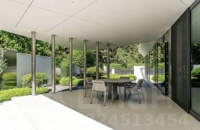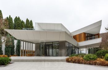 растворяет здание в окружающем ландшафте, а отблески наполняют сад