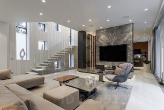 В интерьере использованы натуральные материалы: мрамор Fior Di Bosco,