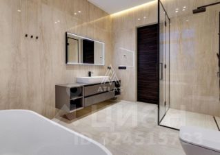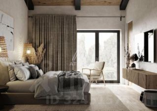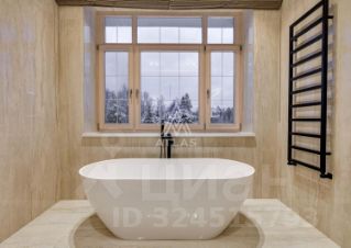 На участке также расположен одноэтажный банный дом 150 м², оформленный в современном стиле с панорамным остеклением.