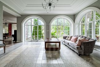 В доме легко дышится и светло, за счет высоких потолков и большого количества панорамных окон. Гармонию и домашний уют дополняют элементы декора, выдержанные в стиле эпохи королевы Виктории, аутентичные аксессуары и предметы интерьера, подобранные с особой тщательностью и вкусом.
