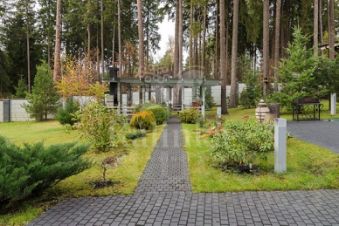 Участок лесной, выполнен ландшафтный дизайн, высажены лесные и декоративные деревья, кустарники, вымощены дорожки, установлено освещение.