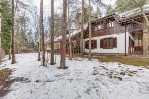 ID 540591. КП Академические дачи (Новодарьино РАН). Потрясающий дом в идеальном состоянии в стиле Шале на лесном участке с вековыми соснами. Дом расположен в дальней части поселка, в 20 метрах от выхода в лес. На участке отдельно стоит гараж на 2 машиноместа с квартирой для персонала. Основной дом - Шале, круглогодично отапливается. Внутри разведена электрика и установлена сантехника, стены готовы под покраску, полы со стяжками, утеплитель на потолках. Крыша из натуральной черепицы. Цоколь сухой, с окнами. Вокруг дома сделана качественная гидроизоляция и дренаж. Уникальный живописный мох. Идеальная правильная форма участка. В доме две террасы: на втором этаже - в мастер-спальне и на первом этаже - выход из столовой. Отделка натуральным деревом (кедр) с лаком - в идеальном состоянии +штукатурка +камень. Тишина вокруг. Выход в лес с участка. Планировка дома: Цоколь: Тренажерный зал, спа -зона, кладовая, с/у, котельная с котлом Висман и бойлером полностью отделана с выходом на участок. 1 этаж: Гостиная -столовая с камином, кухня, гардероб, кабинет, гостевая спальня с с/у, холл. 2 этаж: Мастер-блок с с/у и гардеробной, 2 спальни - каждая с с/у.