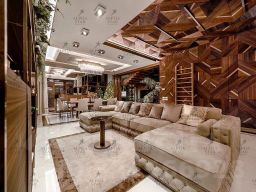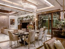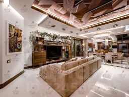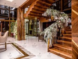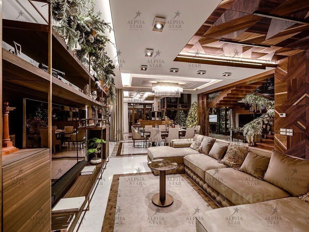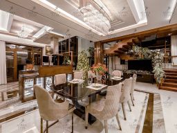 Премиальный особняк выполнен в элегантном стиле с использованием отделочных материалов от ведущих итальянских и британских брендов. Интерьер дополнен дизайнерской мебелью и предметами искусства, создающими атмосферу изысканной роскоши.