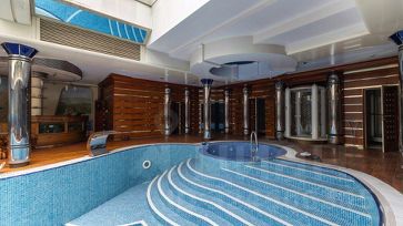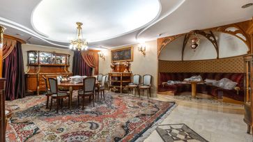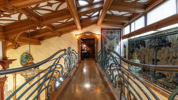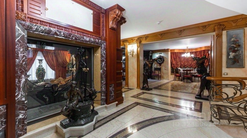 номер объекта: 024053. На продажу предлагается дом на Рублево-Успенском шоссе, в 7 км. от Москвы, в коттеджном поселке Лес ДСК (Шульгино). Дом 3-х уровневый, кирпичный (площадь - 1300 м.кв.), расположен на земельном участке размером 72 сот. Есть гараж на 4 а/м. Отделка - под ключ. В цоколе: гостиная-каминая, кинотеатр, винный погреб, рабочая кухня, комната отдыха, спа зона-раздевалка, сауна, хамам, душевая, с/у, массажная, бассейн с атриумом и выходом на участок. На первом этаже: прихожая, гардеробная, гостевой с/у, две гостевые спальни с с/у, гостиная-каминная, большая гостиная с баром, столовая, кухня, винная комната. На втором этаже: две детские спальни с с/у, мастер спальня с двумя гардеробными и ванной комнатой, кабинет. На третьем этаже: кабинет, библиотека. На участке: дом для обслуживающего персонала 212,8 кв.м.