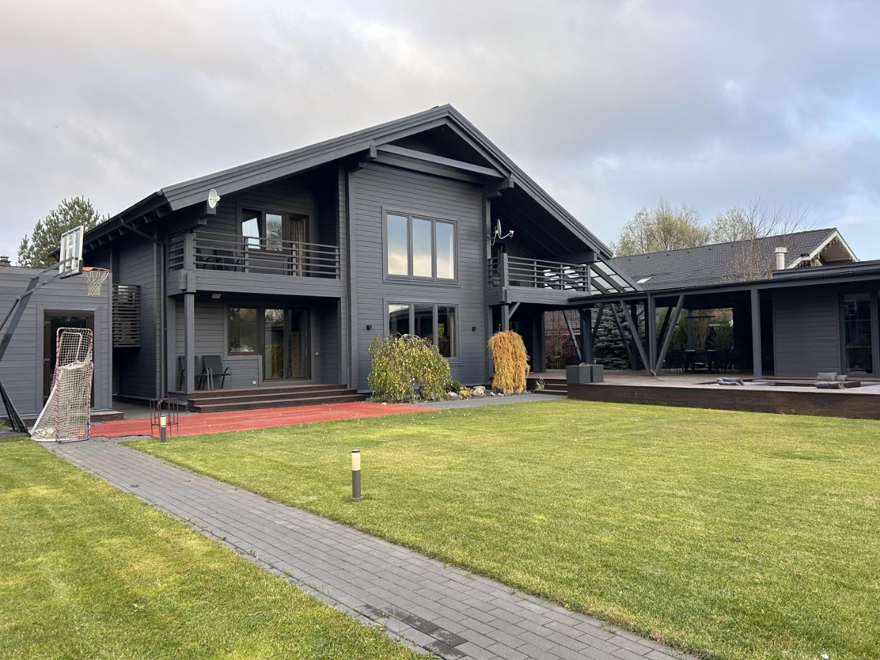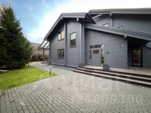 О ДОМЕ: теплый двухэтажный дом выполнен из клееного бруса премиум (пр-во Россия) толщиной 200 мм. Отделка внутренняя - маслом Remmers, наружная краской Sikkens. Панорамные окна (2-х камерные стеклопакеты), второй свет в гостиной.