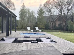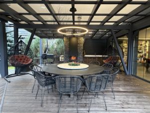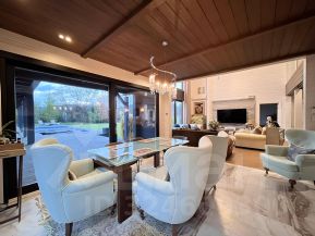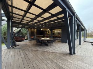 О БАННОМ КОМПЛЕКСЕ: площадь 86,3 кв.м. Зона барбекю под навесом (соединен с крышей дома) с мангалом, казаном для плова и камином, встроенная кухня - чудесное место для праздников в любую погоду. Внутри банного комплекса: бильярдная с зоной отдыха, дровяная русская баня отделана кедром, душевая, с\у, бассейн с системой очистки воды. Открытая спа-зона с естественным солярием, каркасным встроенным бассейном с системой водоочистки.