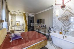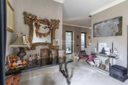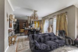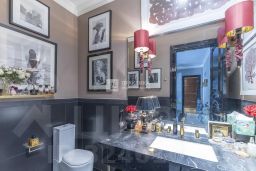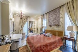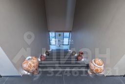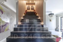 Широкая лестница ведет на второй этаж, где располагаются 4 спальни, 3 санузла. В одной из спален дополнительно установлена ванна. Окна в пол обеспечивают достаточный приток естественного освещения во все комнаты в доме, включая холл. Небольшая часть мебели остается.
