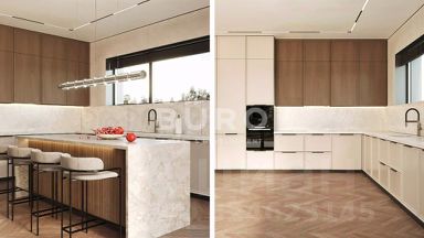 Дом построен в современном стиле из высококачественных материалов. Панорамные окна, большая площадь остекления и высокие потолки делают особняк невероятно просторным и светлым. Центральные коммуникации, интернет, телефон и кабельное ТВ позволят с комфортом жить за городом круглый год.