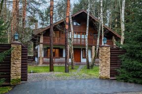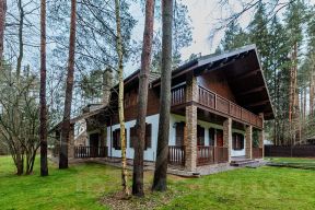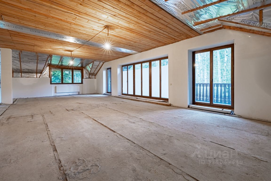 Фасад облицован натуральным деревом - кедром, камнем, дизайнерской штукатуркой. Дом представлен в предчистовой отделке (стены готовы под покраску, разведена электрика, выполнена стяжка полов).