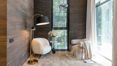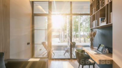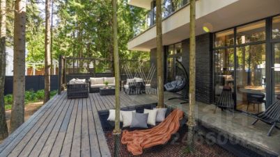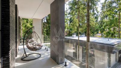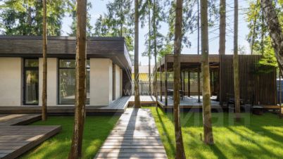 Планировка включает уютную гостиную-столовую, переходящую в кухню с удобным островом, кабинет и 3 спальни с вместительными гардеробными. Кроме того, на территории построена баня площадью 40 м² с большой комнатой отдыха и беседка для тёплых посиделок в кругу семьи и друзей. На участке с вековыми деревьями организована лаундж-зона с гамаком, качелями и зоной для барбекю, осталось только засеять аккуратный газон. Оставить машины можно под двухместным навесом или же на открытой парковке, рассчитанной на 2 автомобиля.