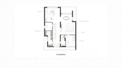 • 1-й уровень: прихожая, гостиная-столовая, кухня, гардеробная, санузел, кабинет, котельная, террасы.