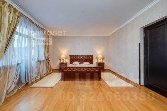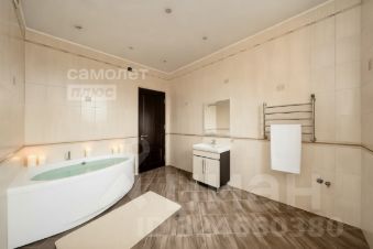 Просторный мастер-блок: большая спальня с панорамным видом на прилегающую зелень (включая ухоженный соседний участок и просторный санузел с окном.