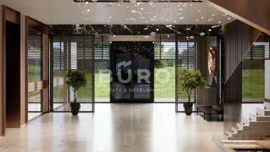 Дом построен в современном стиле из высококачественных материалов. Панорамные окна, большая площадь остекления и высокие потолки делают особняк невероятно просторным и светлым. Центральные коммуникации, интернет, телефон и кабельное ТВ позволят с комфортом жить за городом круглый год.