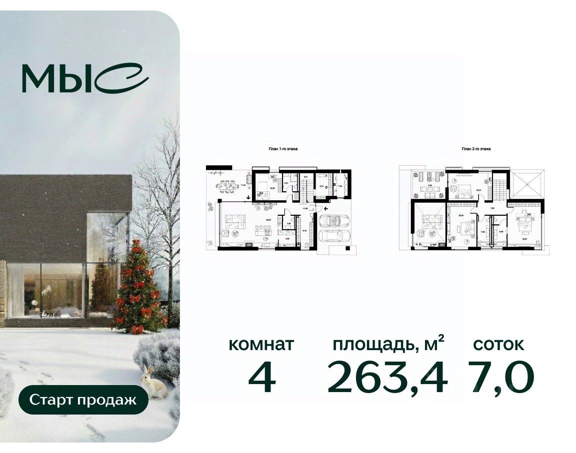 Продаётся загородный коттедж общей площадью 263.37 м² без отделки в семейном природном кластере премиум-класса МЫС. Срок сдачи: III кв. 2028.