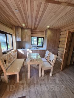 Баня : из оцилиндрованного бревна, печь с камнями на дровах, зона отдыха с кухней, душ и туалет. на 2 этаже спальня.