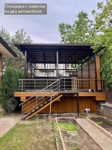 Помимо хозяйского дома на участке есть еще пять отдельно стоящие кирпичные постройки: собственный гараж на два машиноместа; пандус с навесом на два машиноместа, двухэтажный гостевой дом с баней на нижнем этаже и двумя спальнями на втором; одноэтажный павильон с зоной барбекю; автономная котельная (газовый котел Viessmann).