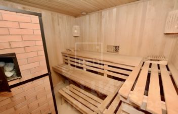 на втором этаже: кабинет-гостиная, две спальни, два санузла, гардеробная; третий этаж - мансардный - представляет собой зону отдыха с огромным диваном, профессиональными тренажерами и русским бильярдным столом.