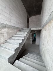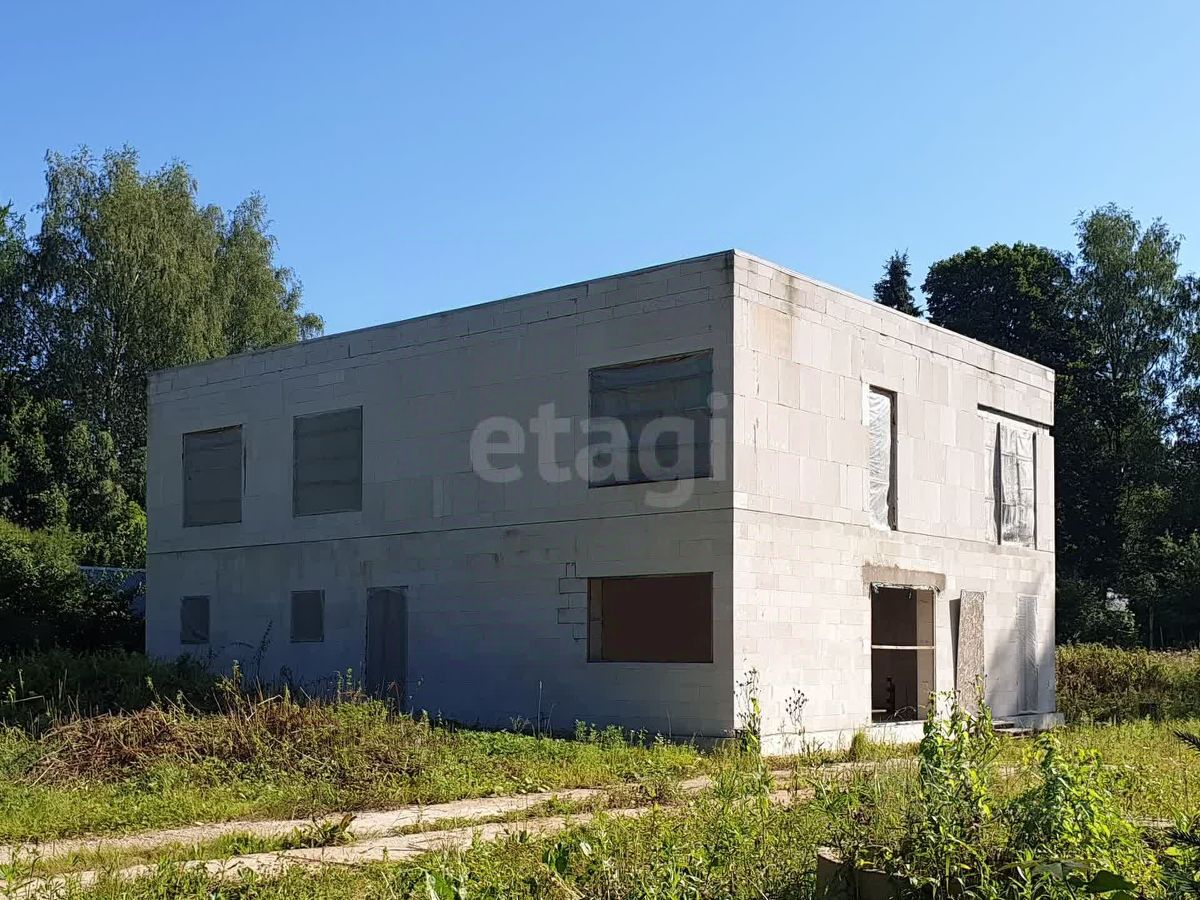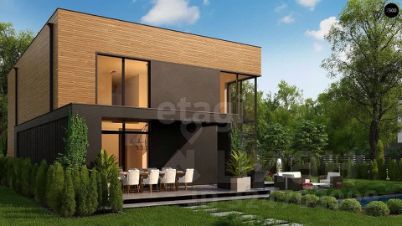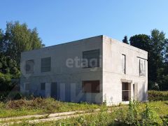 На участке расположен двухэтажный жилой дом из газобетона, построенный по индивидуальному проекту в современном стиле, с плоской кровлей и панорамными окнами общей площадью 285 кв. м. (коробка)