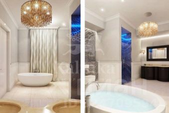 1 этаж: гостиная, кухня, столовая, комната для завтраков, каминный зал, кабинет, гардеробная, 2 санузла, постирочная.