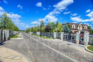 На участке полевого типа произведены ландшафтные работы: участок выровнен, уложен газон, выложены дорожки.
