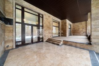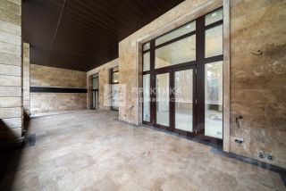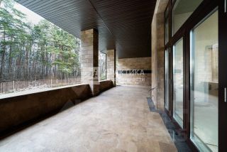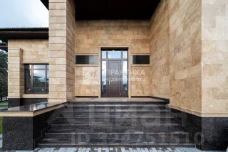 Роскошное исполнение воплощено в использовании натуральных материалов: фасад дома облицован благородным травертином и индийским гранитом, подчеркивающими его статусность и элегантность.
