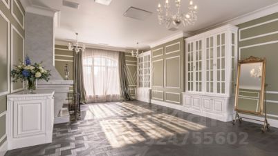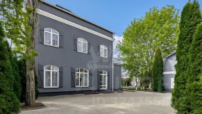 Интерьеры, сочетающие пастельные и глубокие тона, украшены молдингами, обоями с элегантными принтами и изящными люстрами. Отделка выполнена с использованием натуральных материалов. Парадная лестница декорирована фигурной ковкой, а на полу уложен наборный паркет. Дом укомплектован бытовой техникой и сантехникой от ведущих производителей.