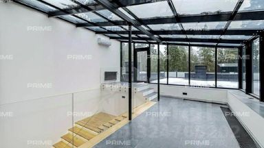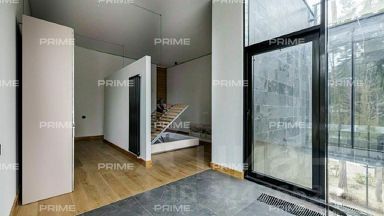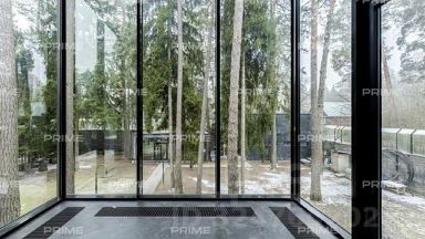 Внутренняя отделка дома выполнена в стиле модернизма. Много света, панорамные окна, пастельные тона, использованные в интерьере, создают ощущение легкости и простора. Находясь в мансарде, стены и крыша которой выполнены из стекла, можно любоваться лесными пейзажами и звездным небом . Любители среднерусской природы оценят этот коттедж по достоинству.