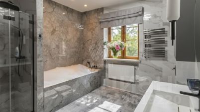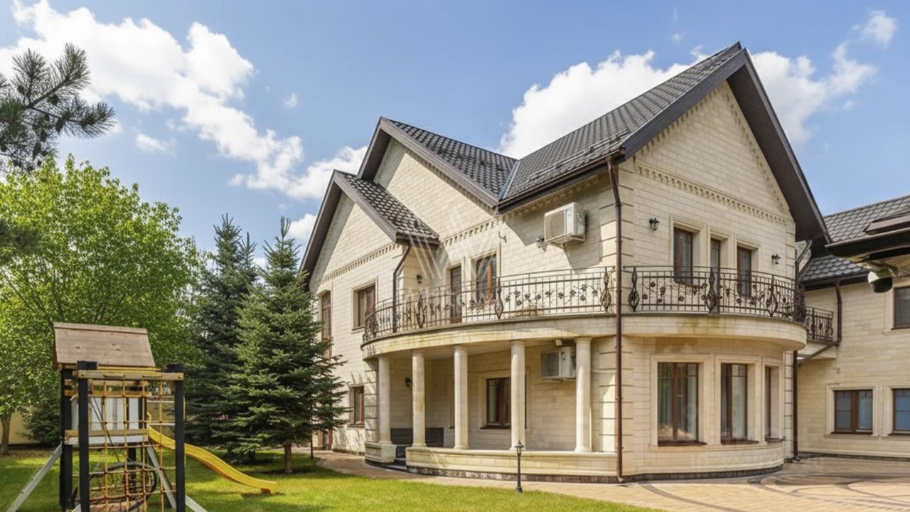 Кроме того, на территории построены баня, застеклённая летняя кухня, уютная беседка для тёплых вечеров в кругу близких и детская площадка. Участок с ухоженным газоном, освещёнными дорожками, пушистыми елями и декоративными кустарниками — это собственный уголок природы, где каждое утро начинается со свежего воздуха и пения птиц.