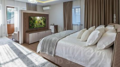 • Второй уровень: мастер-спальня с гардеробной и санузлом, две спальни с балконами, кабинет, игровая, два санузла, балкон.
