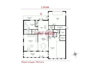 1 этаж: холл, с/у, кухня-столовая, гостиная, спальня с с/у, постирочная, бассейн, сауна, хаммам, душ, с/у, котельная, гараж на 2 м/м, веранда;