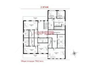 2 этаж: холл, 3 спальни со своими с/у и гардеробными, спальня с с/у, блок для персонала с отдельным входом (2 спальни, с/у, кухня-столовая).