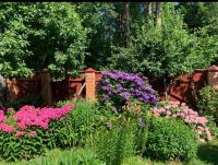 На участке растут плодовые деревья, было завезено много чернозема, есть зона барбекю, гараж на два а/м.