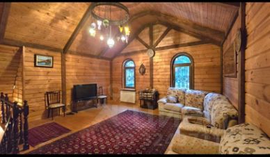 Второй этаж: 3-и изолированные спальни и большая гостиная, с/у. Окна деревянные стеклопакеты, с установленными кованными чугунными решетками, из которых открывается великолепный вид на лес.
