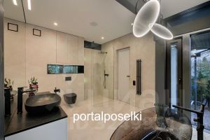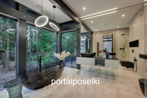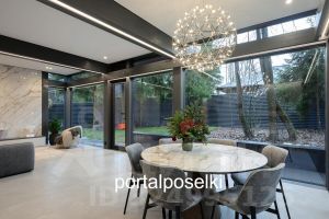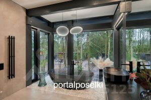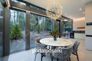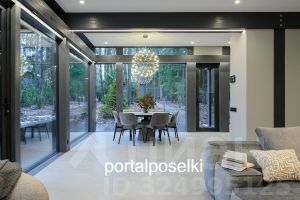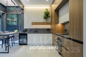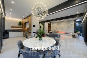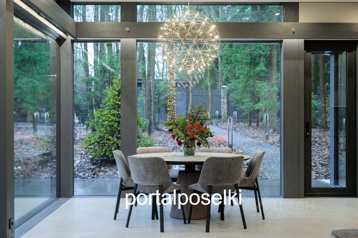 В проекте реализована безбарьерная среда, а благодаря полностью стеклянным стенам, достигается эффект единения с природой. Холодная кровля в стиле Райта добавляет особенную изюминку и избавляет от опасных для детей сосулек. Дизайн в модном сегодня минимализме. Высококачественная отделка, эксклюзивное цветовое решение стен, установлена современная кухня от Giulia Novars, полностью укомплектованная шведской техникой ASKO, встроенной док-станцией с роботом-пылесосом и беспроводной зарядкой для телефона. Столовая-гостиная полностью укомплектована стильной мебелью.