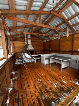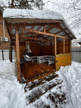 Электричество стандартное 15 кВт. Много розеток, в том числе наружных с двух сторон дома. На участке хозблок (4х8 м) с навесом и беседка с мангалом печного типа.