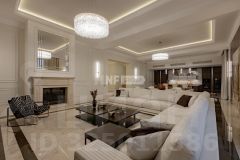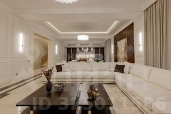 В доме вы найдете просторную кухню-столовую, совмещенную с гостиной и выходом на террасу, пять спален, шесть санузлов, блок для персонала, постирочную и гараж на две машины. В отделке использованы высококачественные материалы, в частности итальянский керамогранит, натуральный мрамор, а также представлена премиальная сантехника из Италии и Германии. Функционально удобная планировка, просторные помещения и панорамное остекление расширяют пространство и предусматривают комфортное проживание для большой семьи. Современные инженерные системы включают центральное кондиционирование, автоматическую регулировку теплых полов и конвекторное отопление, создавая комфортные условия в любое время года.